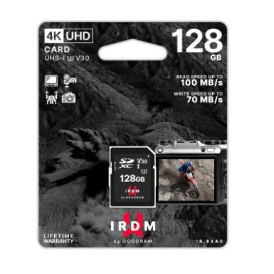IRDM UHS-I U3 CARD brings high performance and reliability for everyone who wants to shoot 4K and slow motion videos or shoot high quality JPEG and RAW pictures in fast burst modes.