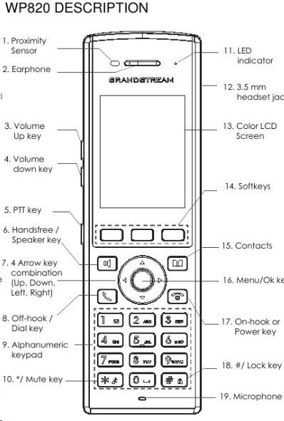 Grandstream WP820 [Wi-Fi IP telefon, 2 linky, 2 SIP účty, 2.4" TFT 240x320, bluetooth, 3.5mm jack, OS Android]