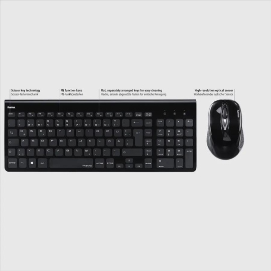 Hama set bezdrátové klávesnice a myši Trento, černý