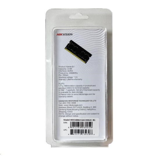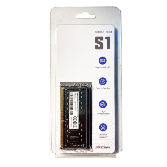 Hikvision memory moudule S1 is a DDR4 memory,which is manufactured by using original high-quality granules and mature production technology to make it more compatible, work stable and cos-etffective. It can be widely used in notebook computer installation.