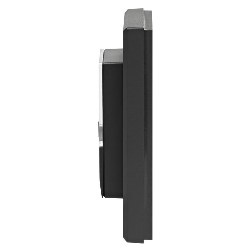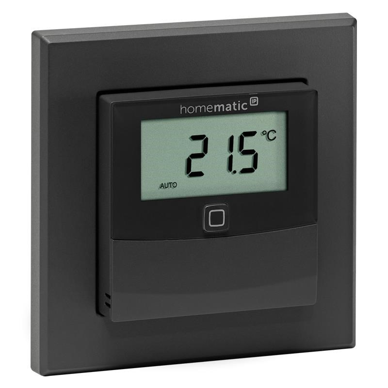 Bezdrátový nástěnný Senzor teploty a vlhkosti v antracitové barvě (HmIP-STHD-A) s LED displejem o velikosti 1,74" (4,4 cm) pro zobrazení aktuálních informací představuje inteligentní způsob pro regulaci vytápění a úsporu energií.