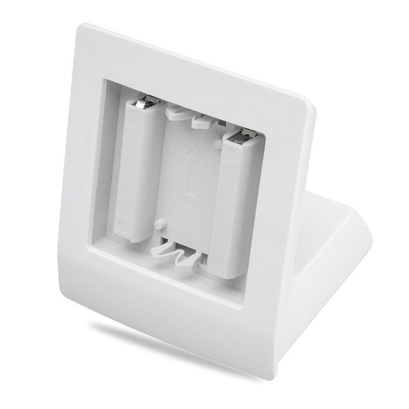 Pod krytem ve spodní části zařízení se nachází zásobník pro dva kusy tužkových napájecích baterií 1,5 V typu AA a stojánek tak může velmi dobře pracovat jako dokovací napájecí stanice i pro vložená zařízení bez napájecích baterií. Pokud je do Stojánku (HmIP-DS55) s bateriemi integrován bezdrátový bateriový prvek, bude navýšena pracovní doba této komponenty v důsledku použití baterií typu AA namísto běžně používaných baterií typu AAA přímo v zařízení.