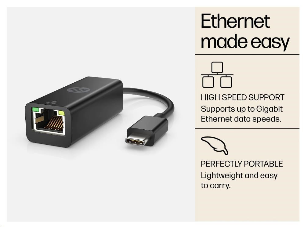 HP USB-C to RJ45 Adapter EURO Připojte své zařízení USB-C™ k síti Ethernet pomocí tohoto snadno přenosného ethernetového adaptéru typu plug-and-play. Kabelové připojení k síti Ethernet je zárukou vysoké rychlosti internetu a umožňuje rychlé a spolehlivé streamování a stahování digitálního obsahu. Podpora vysokých rychlostí - Podporuje rychlosti rozhraní Gigabit Ethernet pro snadné streamování a práci. Výborně přenosný - Lehké provedení si snadno vezmete všude tam, kde máte přístup k síti Ethernet. Spolehlivé pokrytí - Standardní jednoletá omezená záruka HP vám poskytne klid na práci.1.
