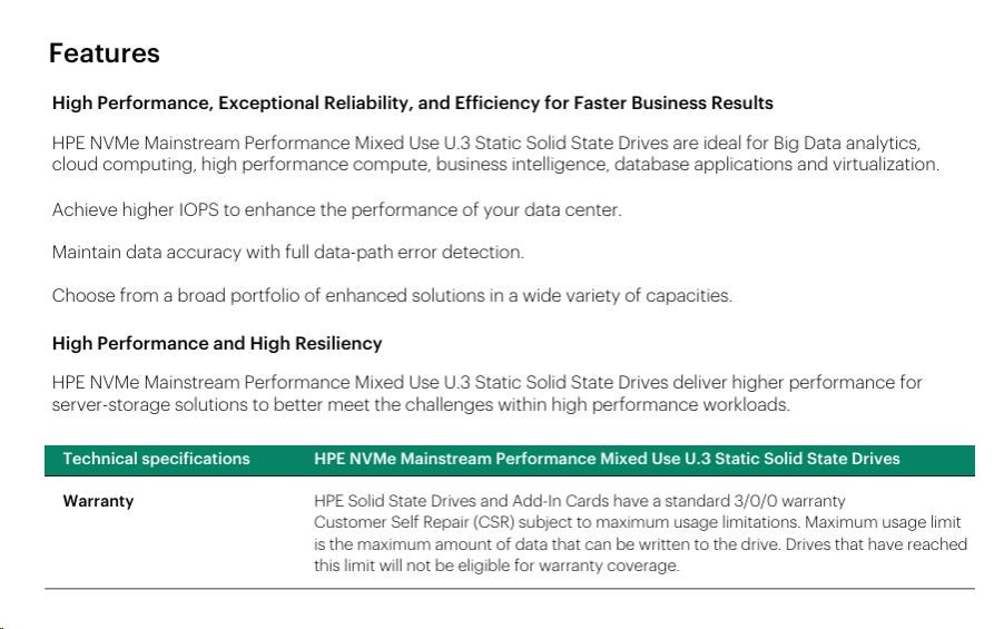 HPE 3.2TB NVMe Gen4 Mainstream Performance Mixed Use SFF BC U.3 Static V2 Multi Vendor P65015-B21 RENEW