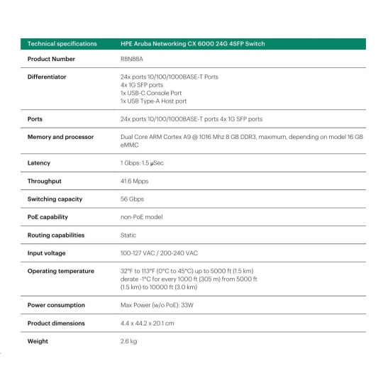 | Specification | 6000 24G 4SFP Switch (R8N88A) |
