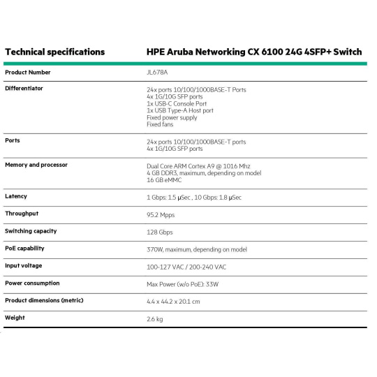 | Aruba 6100 24G 4SFP+ Switch (JL678A) | |