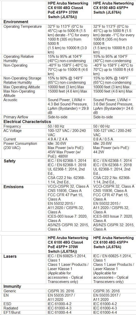 HPE Aruba Networking CX 6100 48G 4SFP+ Switch RENEW JL676AR#ABB.