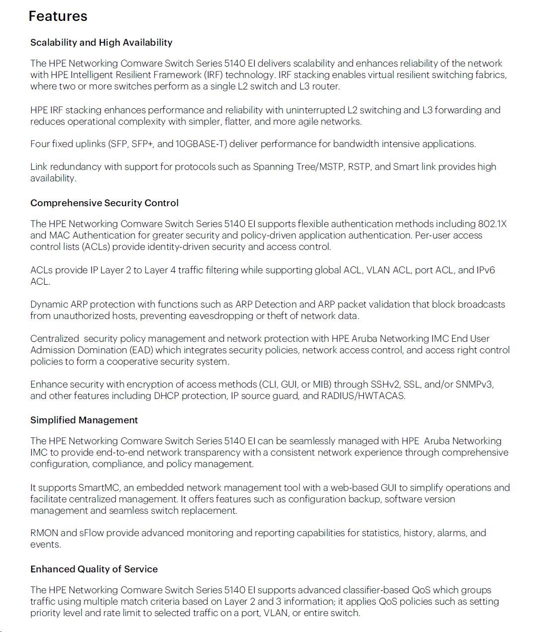 | Management | IMC - Intelligent Management Center; SmartMC; command-line interface; Web browser; SNMP Manager | |