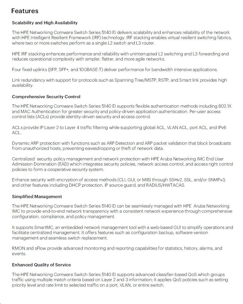 HPE Networking Comware Switch 8G 2SFP 2GT Combo EI 5140 R8J42AR RENEW