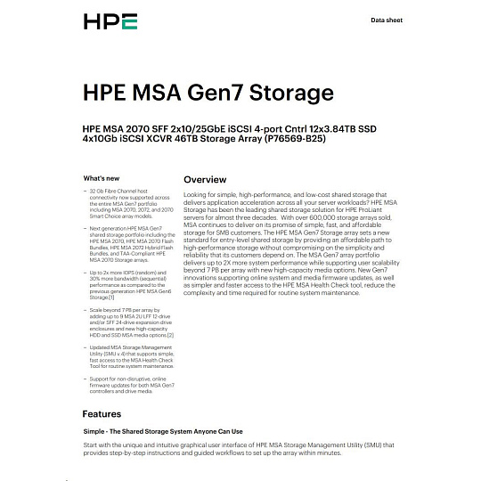 HPE MSA 2060 SFF 2x10/25GbE iSCSI Array.