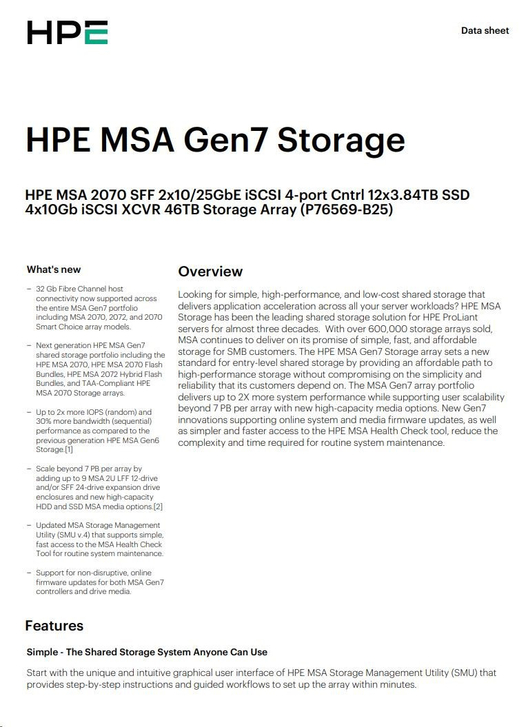 HPE MSA 2060 SFF 2x10/25GbE iSCSI Array.