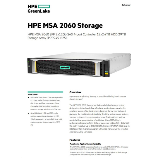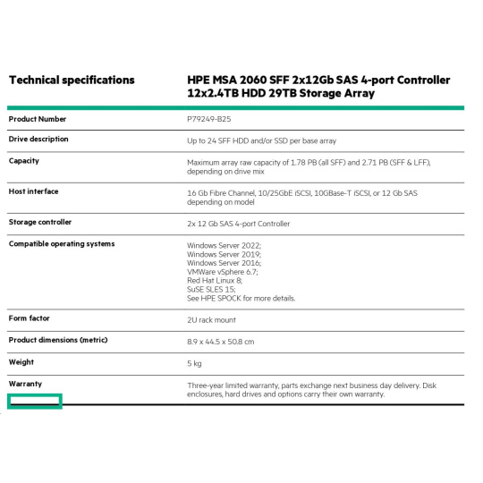 HPE MSA 2060 SFF 2x12Gb SAS 4-port Controller 12x2.4TB HDD 29TB Storage Array Smart Choice