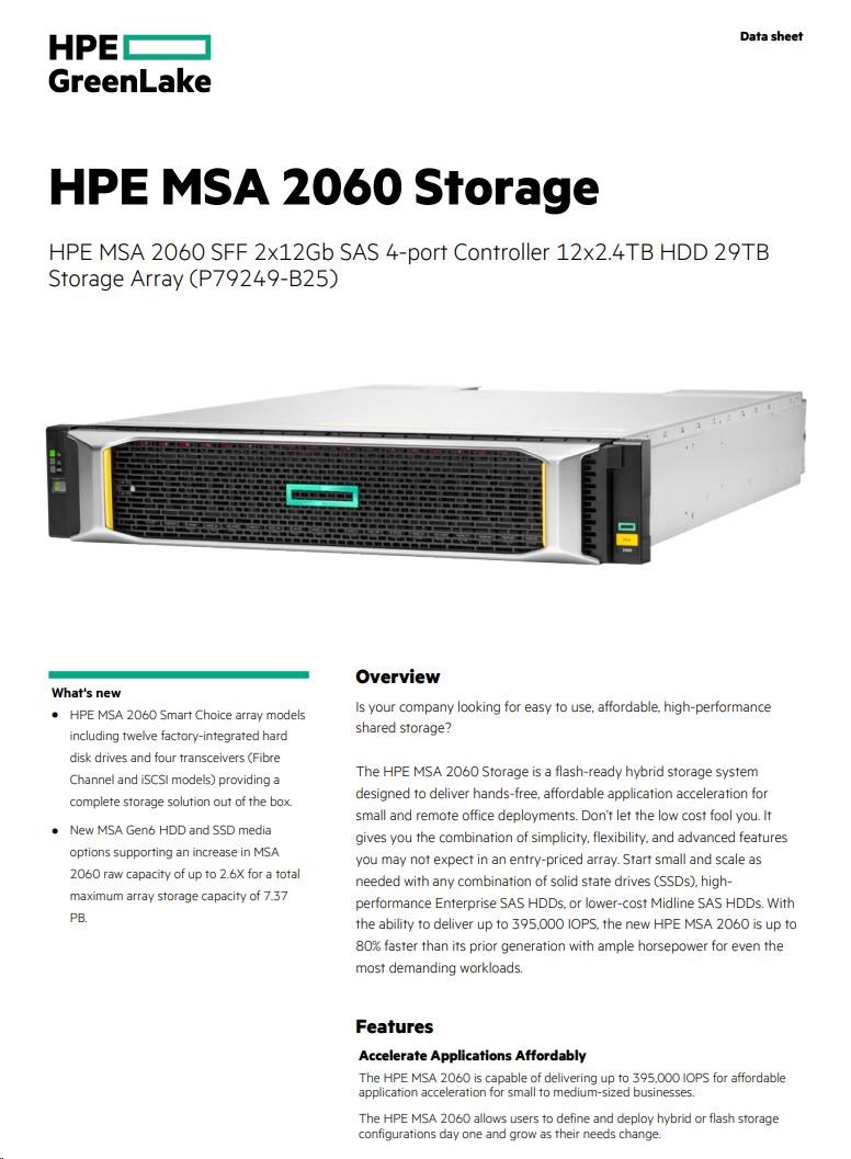 HPE MSA 2060 SFF 2x12Gb SAS 4-port Controller 12x2.4TB HDD 29TB Storage Array Smart Choice