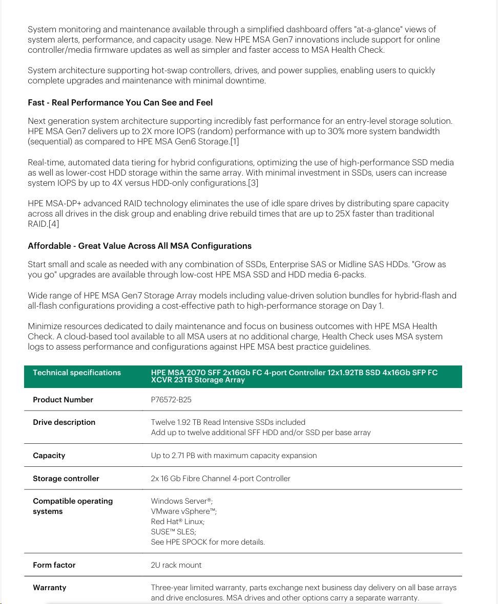 HPE MSA 2070 LFF 2x10/25GbE iSCSI Array.