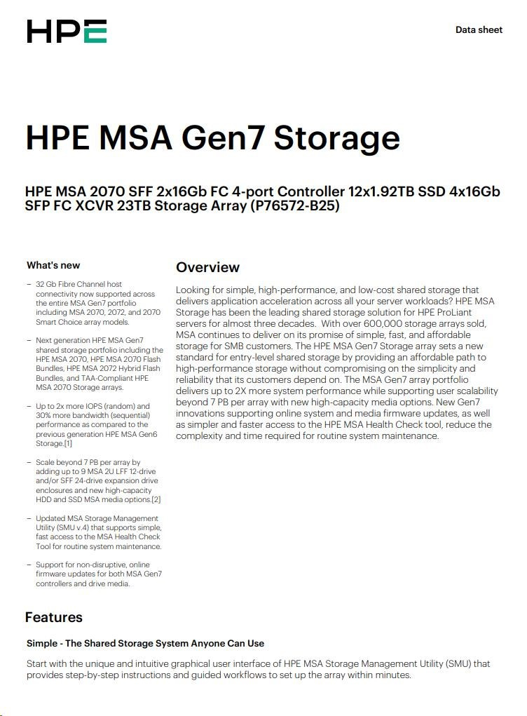 HPE MSA 2070 LFF 2x32Gb FC 4p Array.