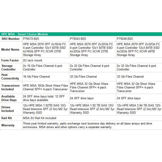 HPE MSA 2070 SFF 23TB (12x1.92TB R0Q47A, 2x16G FC4pController, 4x16Gb SFP-SFP-FCXCVR C8R24B) Smart Choice