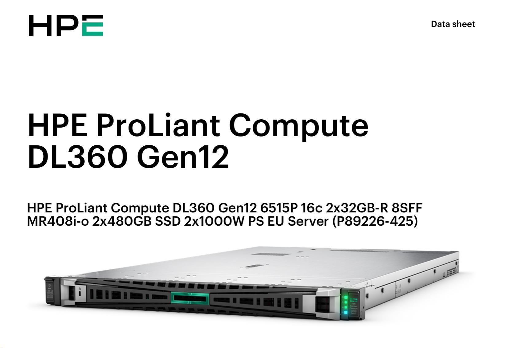 HPE PL DL360 Gen12 6515P (2.4/16C) 2x32G (P69727) 2x480G MR408i-o 8SFF 2x1000W 10GbE NBD333 Smart Choice