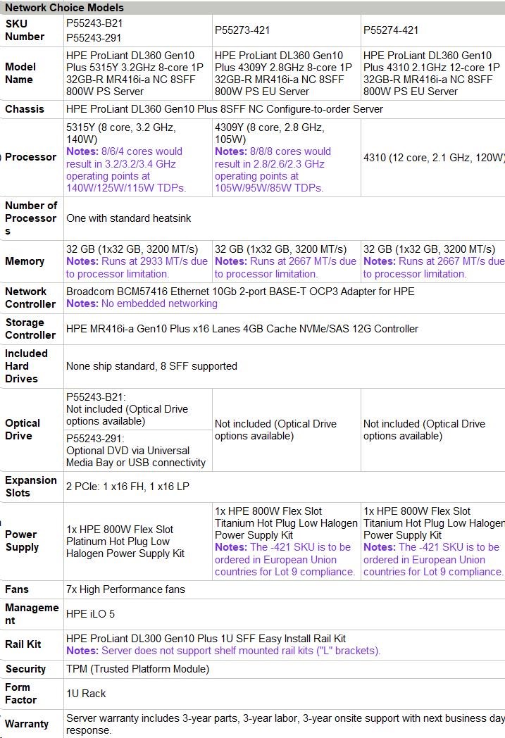 Model Name HPE ProLiant DL360 Gen10 Plus 4309Y 2.8GHz 8-core 1P 32GB-R MR416i-a NC 8SFF 800W PS EU Server