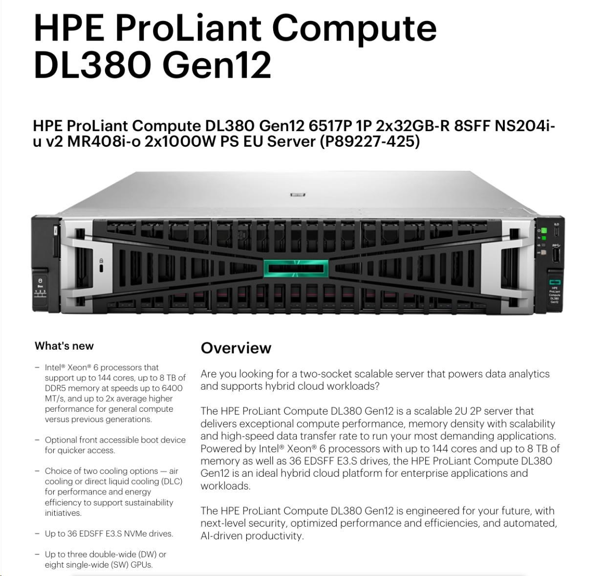 HPE PL DL380 Gen12 6517P (3.2/16C) 2x32G (P69727) NS204(2x480) MR408i-o 8SFF 2x1000W 10GbE NBD333 Smart Choice