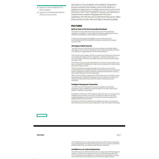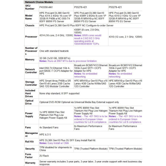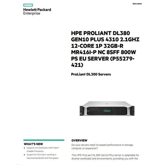 HPE PL DL380g10 Plus 4310 (2.1/12C) 32G MR416i-p/4Gssb 8SFFBCU3 1x800Wtit L9 ocp2x10GSFP+ RF NBD333 P55279-421 RENEW