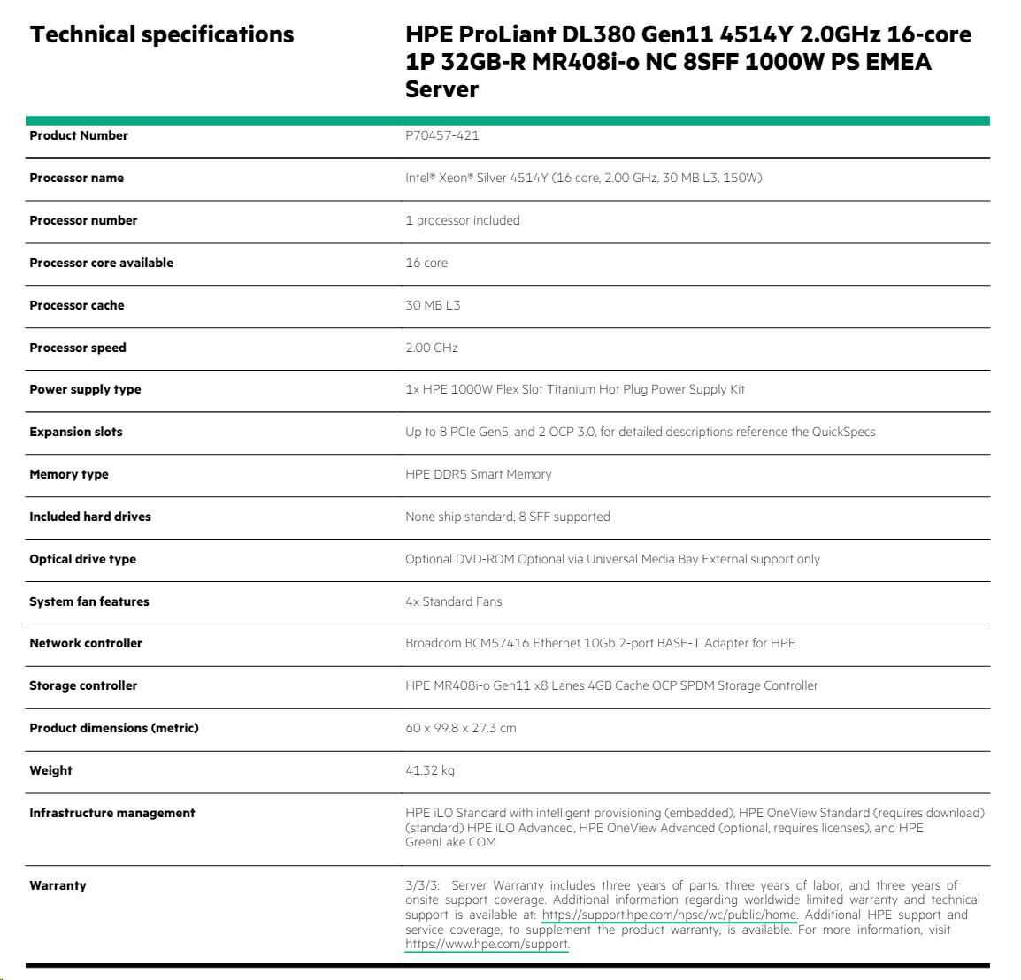 HPE PL DL380g11 4516Y+ (2.2G/24C) 2x32G (p64706) MR408i-o/4G 2x480G 2x1000W 2x10G-T Smart Choice.