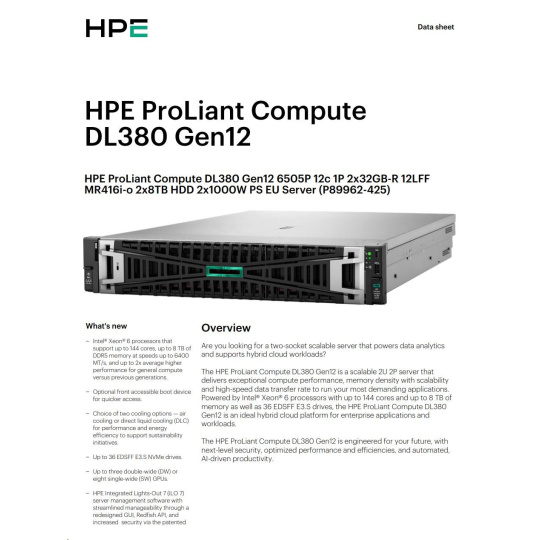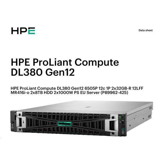 HPE PL DL380g12 6505P (2.2/12C) 2x32G (P69727) 2x8TB MR416i-o 2x1000W 10GbE NBD333 Smart Choice.