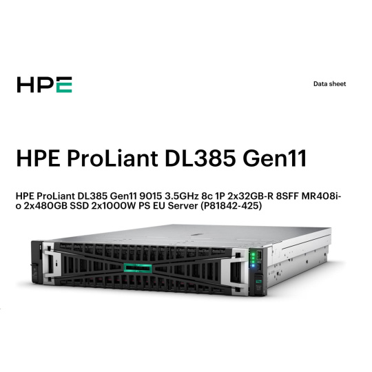 HPE PL DL385g11 AMD EPYC 9015 (3.6/8C) 2x32G (P64985) 2x480G MR408i-o 2x1000W 8SFF 2p10GT Smart Choice