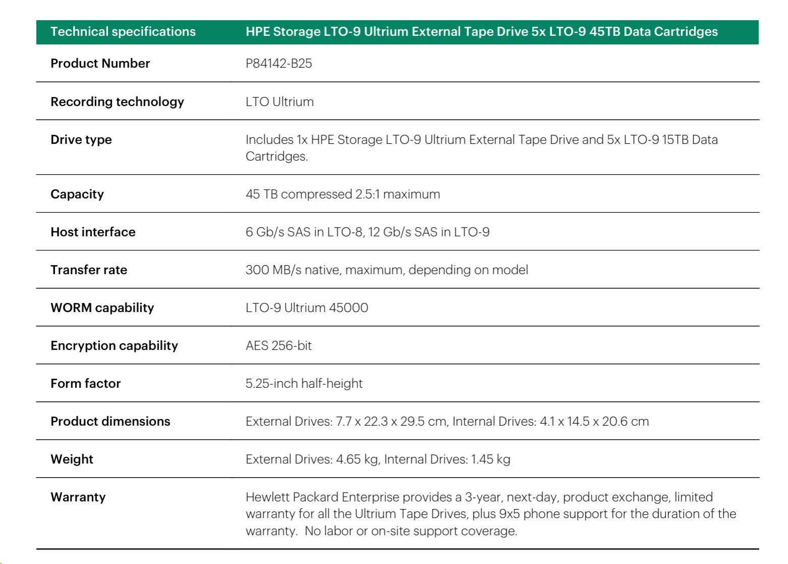 HPE Storage LTO-8 Ultrium External Tape Drive 5x LTO-8 30TB Data Cartridges