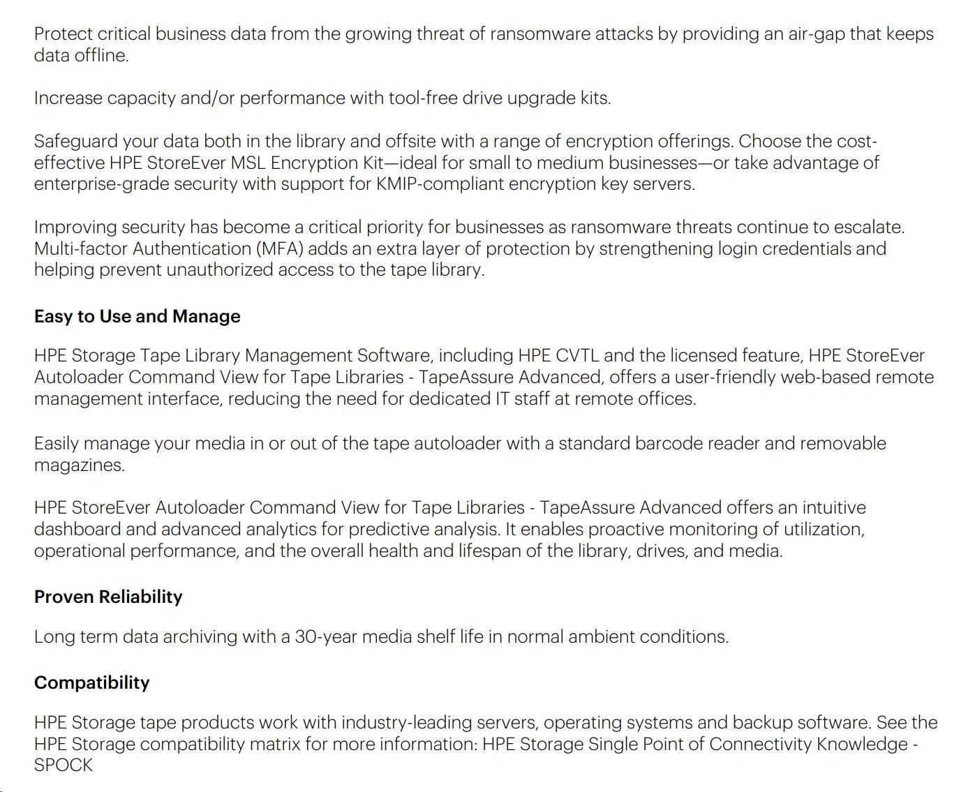 HPE Storage MSL 1/8 Tape Autoloader 1x MSL LTO-9 Fibre Channel 5x LTO-9 45TB Data Cartridges