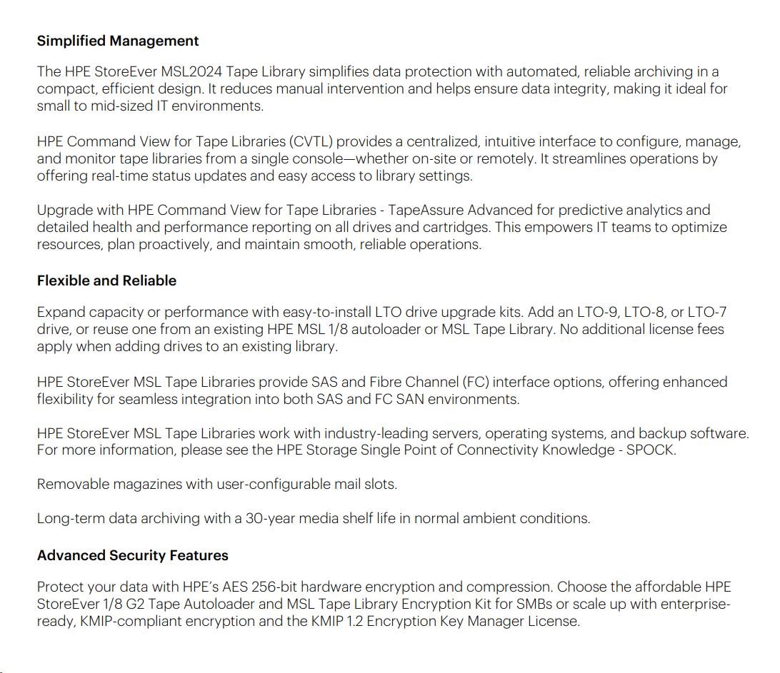 HPE Storage MSL2024 Tape Library 1x MSL LTO-9 SAS Drive 15x LTO-9 45TB Data Cartridges.