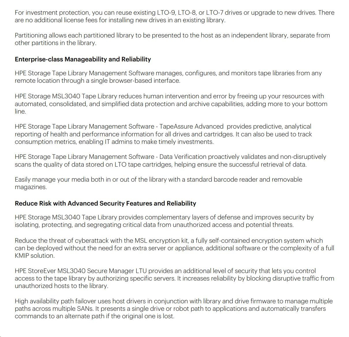 HPE Storage MSL3040 Tape Library 1x MSL LTO-9 SAS Drive 20x LTO-9 45TB Data Cartridges.