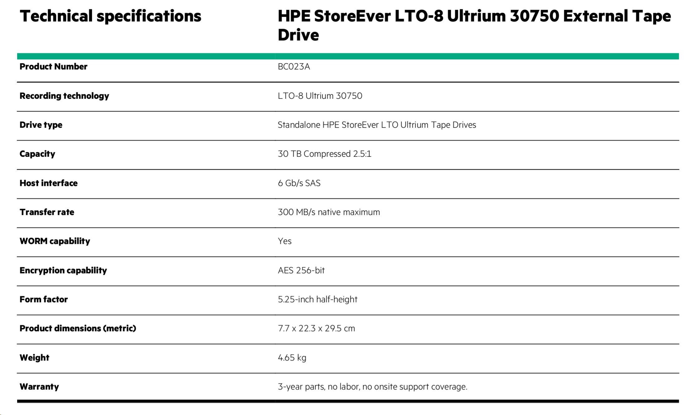 - HPE StoreEver LTO-8 Ultrium 30750 External Tape Drive