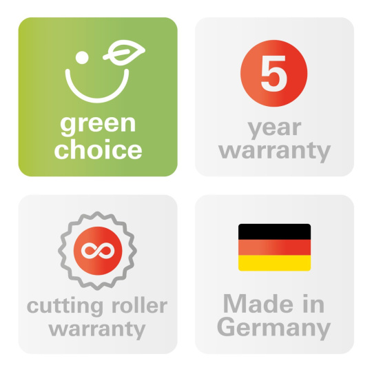 Záruka na stroj je 60 měsíců, doživotní záruka na nože.