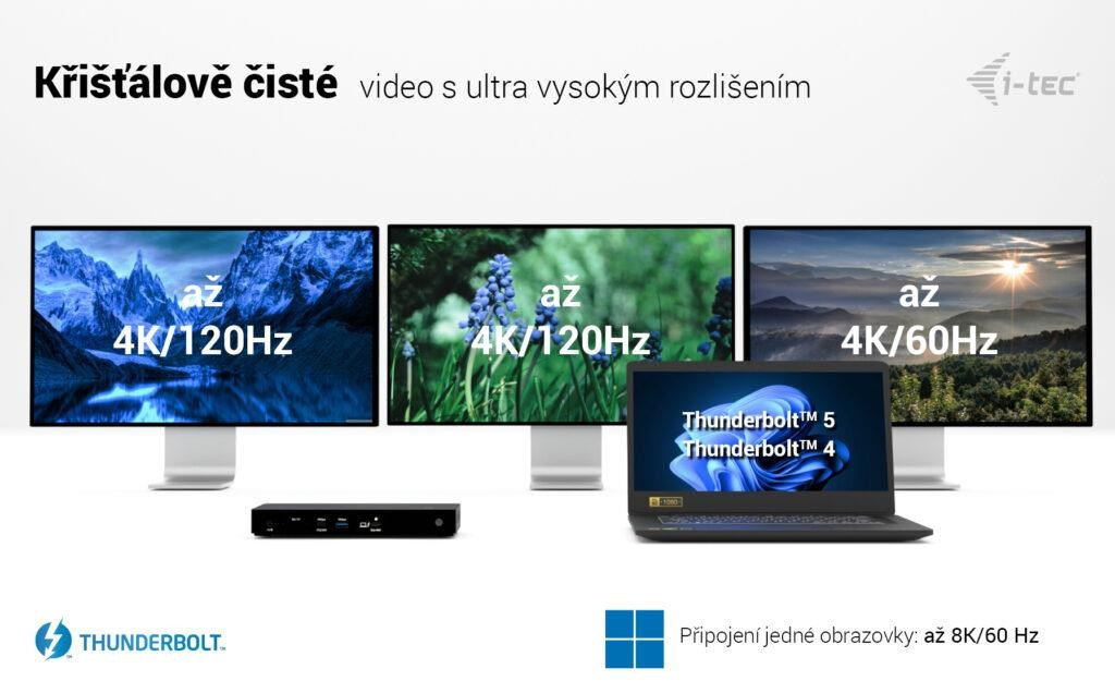 • 3 monitory – HDMI + HDMI + TB › až 2x 4K/30Hz + 1x 4K/60Hz