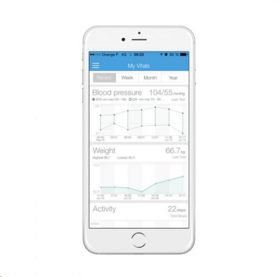 Pokud ovšem potřebujete sledovat dlouhodobější vývoj naměřených hodnot, doporučujeme iHealth Track pravidelně synchronizovat s aplikací iHealth MyVitals, která je zdarma a kompatibilní s chytrými zařízeními se systémem iOS nebo Android a podporou Bluetooth 4.0.