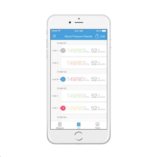 Pokud ovšem potřebujete sledovat dlouhodobější vývoj naměřených hodnot, doporučujeme iHealth Track pravidelně synchronizovat s aplikací iHealth MyVitals, která je zdarma a kompatibilní s chytrými zařízeními se systémem iOS nebo Android a podporou Bluetooth 4.0.
