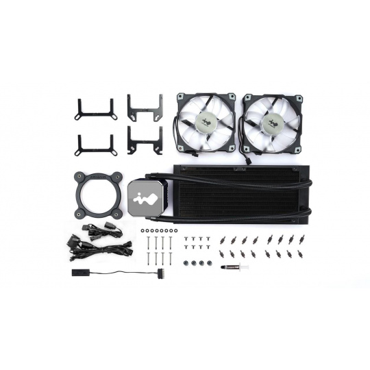 | Package Contents | InWin SR PRO Series 240mm CPU Liquid Cooler x 1 InWin AJF120 Addressable Fan x 2 ARGB One-Click Controller Fan and Radiator Mounting Screws Pack Mounting Kit for CPU Sockets Cable Pack |