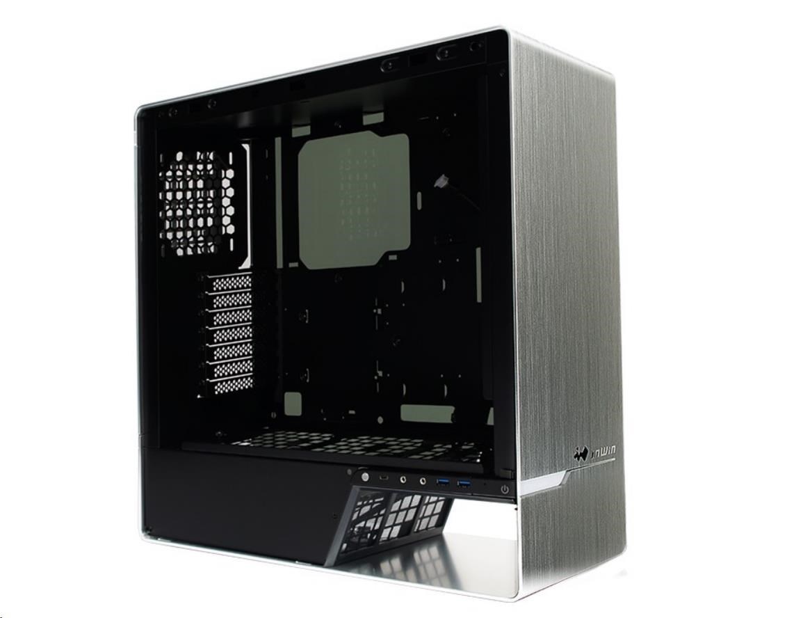 IN WIN skříň 905, Mid Tower, průhledný bok, bez zdroje, titanium grey, oled, 3x Sirius fan