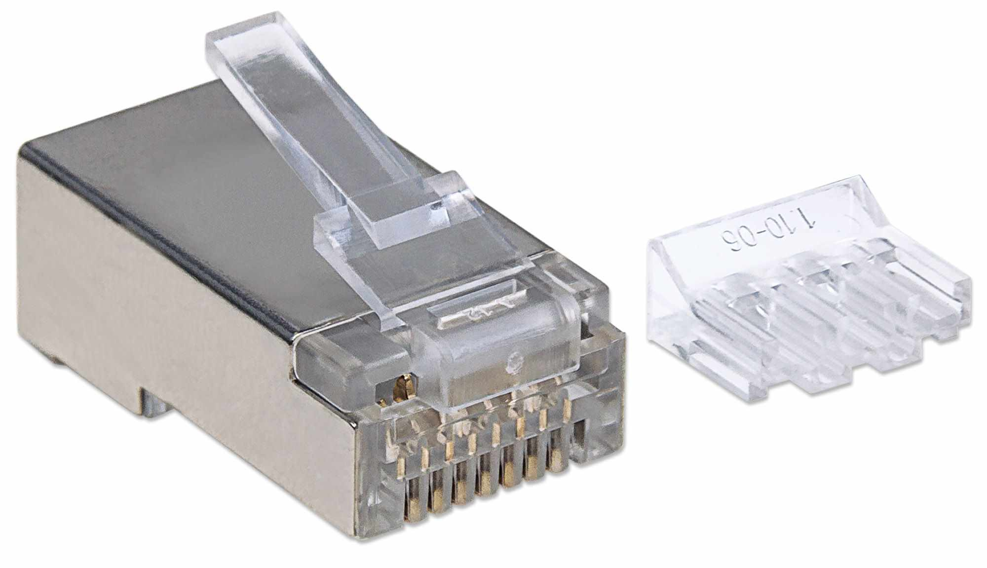 Intellinet Network Solutions RJ45 8polohové modulární zástrčky s 8 kontakty (8P8C) poskytují našim zákazníkům možnosti pro kabely CAT5e, CAT6 a CAT6a v nestíněných a stíněných variantách. Nabízíme 15 mikrokontaktů ve zlatě pro naše standardní zástrčky nebo vysoce kvalitní 50 mikrokontaktů v našich řadách Premium a Pro. Pozlacené kontakty o velikosti 15 mikropalců Tříkolíková svorka pro pevný vodič Podporuje 24 až 26 AWG Pasuje na kulatý kabel Pro aplikace se stíněnou kroucenou dvojlinkou Standardní provedení 8P8C, kompatibilní se všemi síťovými přípojkami RJ45 Plně kompatibilní s aplikacemi kategorie 3, 4, 5, 5e, 6 a 6A Doživotní záruka.