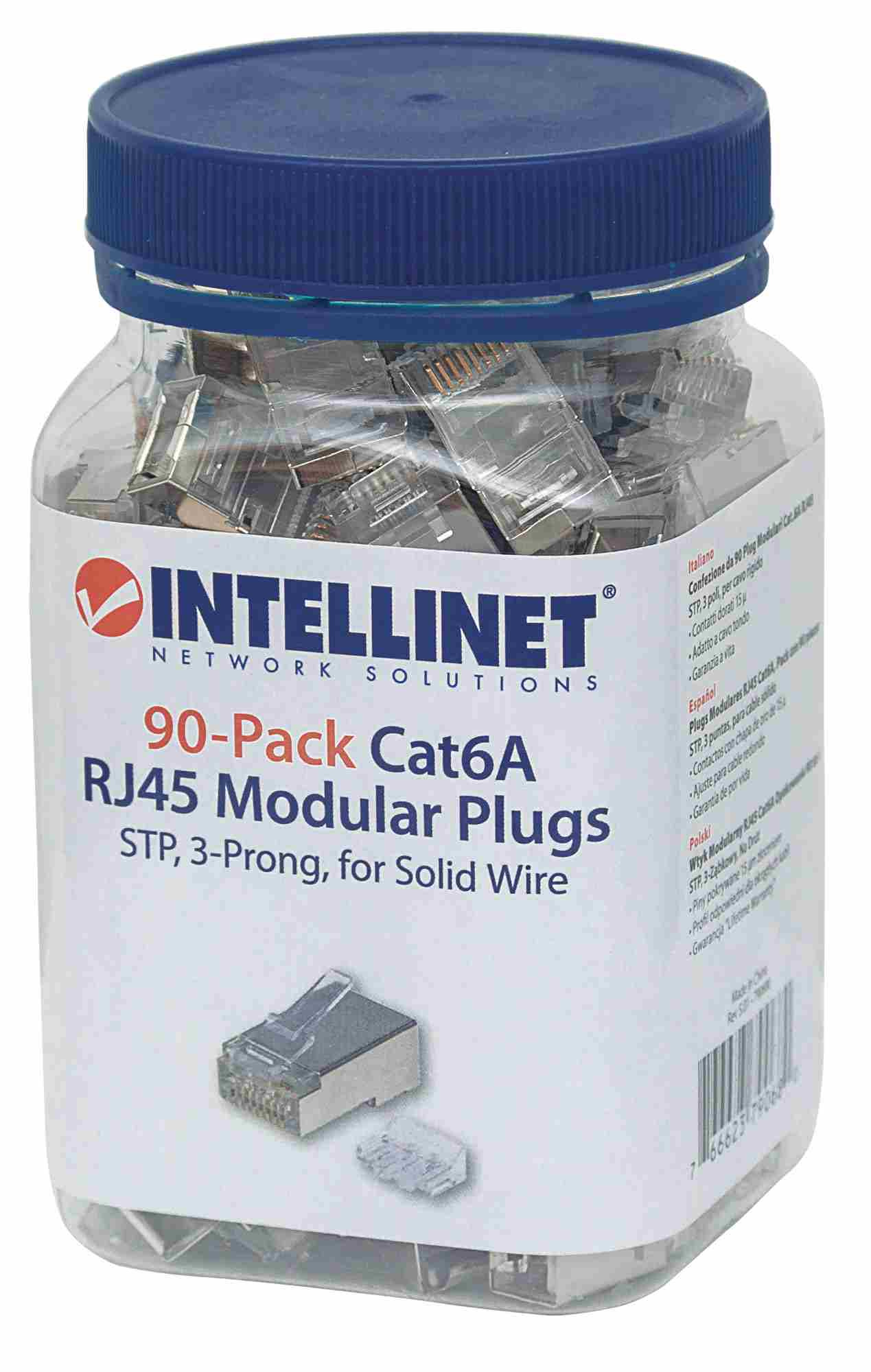 Intellinet konektor RJ45, Cat6A, stíněný STP, 15µ, drát, 90 ks v nádobě