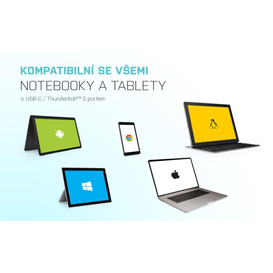 Hardwarové požadavky: notebook, tablet, PC, smartphone s?OS Windows, Mac nebo Google s volným portem USB-C s podporou “DisplayPort Alternate Mode”