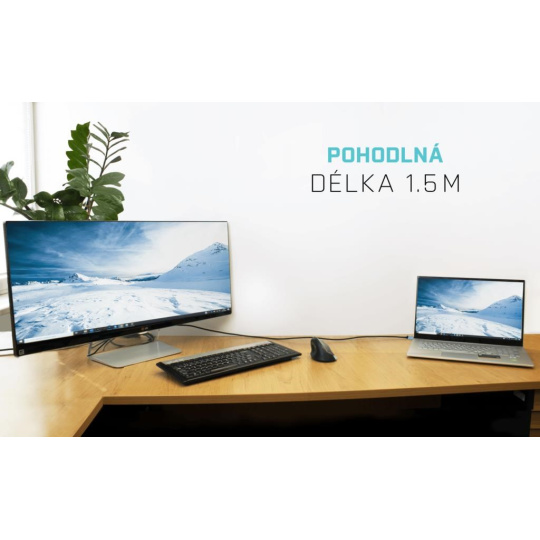 - 1x USB-C 3.1 nebo Thunderbolt 3 konektor, přenosová rychlost až 10 Gbps (USB-C), resp. 40Gbps (Thunderbolt 3), pro připojení adaptéru k notebooku, tabletu nebo PC