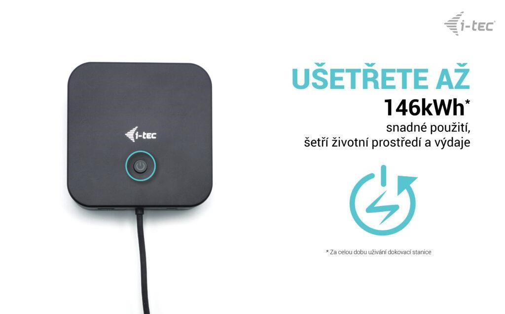 Úsporný vypínač pro snížení spotřeby energie, když se dokovací stanice nepoužívá.