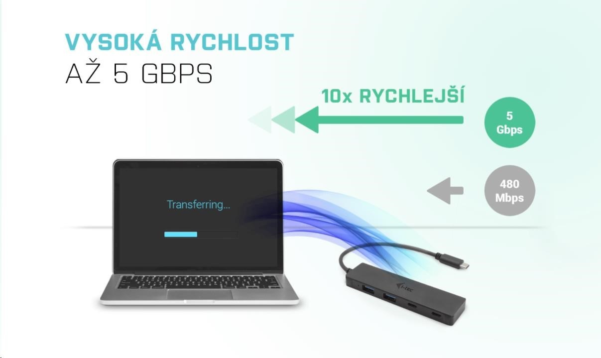 Hub nevyžaduje instalaci ovladačů, pouze jej pomocí USB-C kabelu připojíte a můžete jej ihned začít využívat. Hub má vestavěnou přepěťovou ochranu vašeho počítače pro případ zkratu na periferních zařízeních. Samozřejmostí je zpětná kompatibilita s USB 2.0. Díky kompaktním rozměrům a nízké hmotnosti jej můžete mít v brašně stále sebou – kovový povrch ostatně chrání hub před poškozením a před poškrábáním.