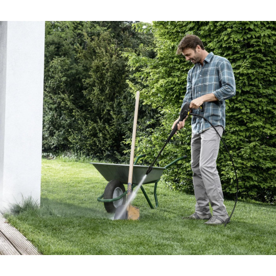 Tlaková myčka Kärcher K 2 Universal se stane šikovným pomocníkem kolem vašeho domu. Ať už jsou to schody pokryté mechem nebo špinavé zahradní nářadí, vapka s rotační tryskou nečistoty ostraní snadno a rychle. Kompaktní stroj je ideální pro všechny příležitostné úklidové práce doma a na dvoře. Rotující paprsek odstraňuje nečistoty velmi účinně. Díky nízké hmotnosti a vestavěné praktické rukojeti pro přenášení, můžete snadno talkovou myčku přepravit tam, kde ho potřebujete. Systém Quick Connect nabízí pohodlné připojení a odpojení třímetrové vysokotlaké hadice do zařízení pistole. Veškeré dodávané příslušenství lze snadno uložit na stroji. To je možné díky chytrým držákům na zařízení. Dokonce i napájecí kabel lze elegantně uložit do integrovaného kabelového slotu.