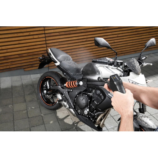 Aplikace také nabízí komplexní službu včetně informací o zařízení. Zařízení je vybaveno vysokotlakou pistolí a pracovními nástavci s adaptérem Quick Connect. Úroveň tlaku lze nastavit přímo na nástavci