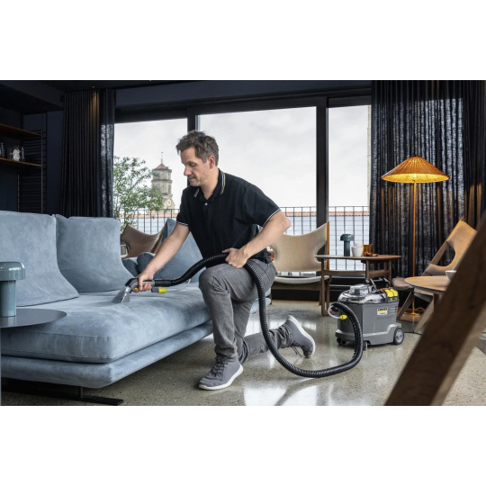 Robustní, odolný, účinný: Sprejový extrakční čistič Puzzi 8/1 působivě čistí čalounění a odstraňuje skvrny z textilních povrchů s vynikajícími a hygienickými výsledky čištění a vysokou účinností. Kompaktní sprejový extrakční stroj nastříká čisticí roztok