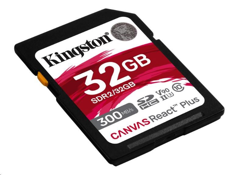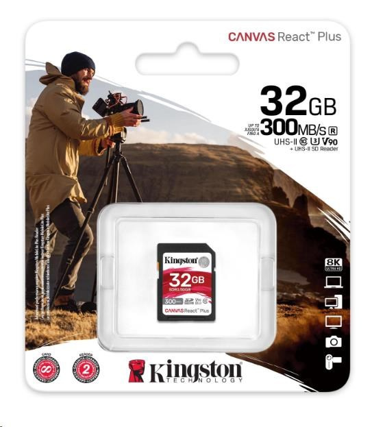Kingston SDHC karta 32GB Canvas React Plus SDHC UHS-II 300R/260W U3 V90 for Full HD/4K/8K