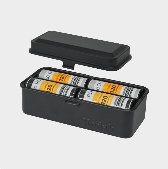 Pouzdro na filmy Kodak, vyrobené z oceli s vysokou pevností v tahu, dodá vašim filmům ochranu. Pouzdro je malé a přenosné, je ideální také pro všechny milovníky analogů. Udrží vaše role filmu suché a čisté, uspořádá až 8 rolí 120mm filmu naskládaných vodorovně nebo až 10 rolí 135mm filmu umístěných svisle - to vše na jednom místě. Ideální na každý den fotografování. Pouzdro na role je kompaktní a přenosné, ideální také pro všechny milovníky analogů. Udrží vaše role filmu suché a čisté a zároveň uspořádá vaše filmové příslušenství. Vnitřní pouzdro je vyrobeno z odolného plastu. Pomáhá oddělit vašich pět rolí filmu a úhledně je uskladní. Je odnímatelné a můžete si do něj bez omezení umístit, co jen chcete. Vhodné pro 120 nebo 135 filmů 8 rolí po 120 filmech nebo 10 rolí po 135 filmech, případně 4 role po 120 filmech a 5 rolí 35 mm současně Vyrobeno z oceli s vysokou pevností v tahu, která poskytuje vašim filmům silnou ochranu. Udržuje pořádek ve vašich filmových rolích.