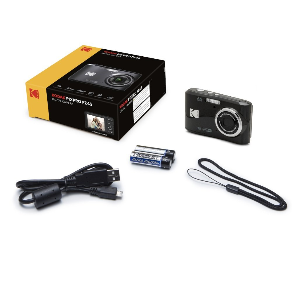 | Obsah balení: | KODAK FZ45 2x AA alkalická baterie Micro USB kabel Řemínek na ruku Průvodce rychlým startem |